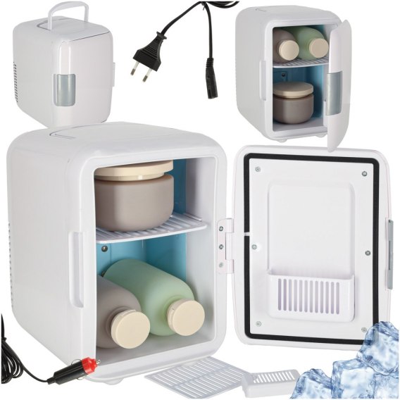 Lodówka turystyczna elektryczna samochodowa mini na jedzenie kosmetyki grzanie chłodzenie 2w1 4L biała